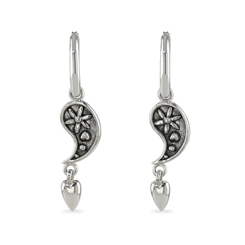 Yin yang and heart hoop earrings