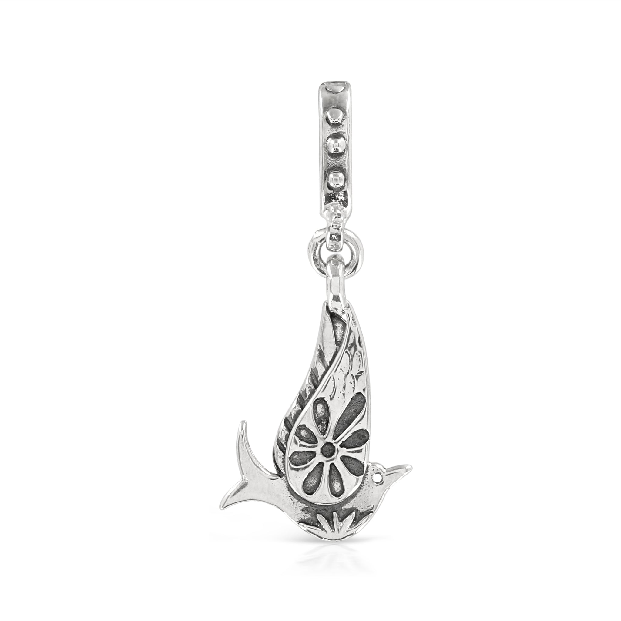 Beautiful, classic little double sided bird with long detailed bale.