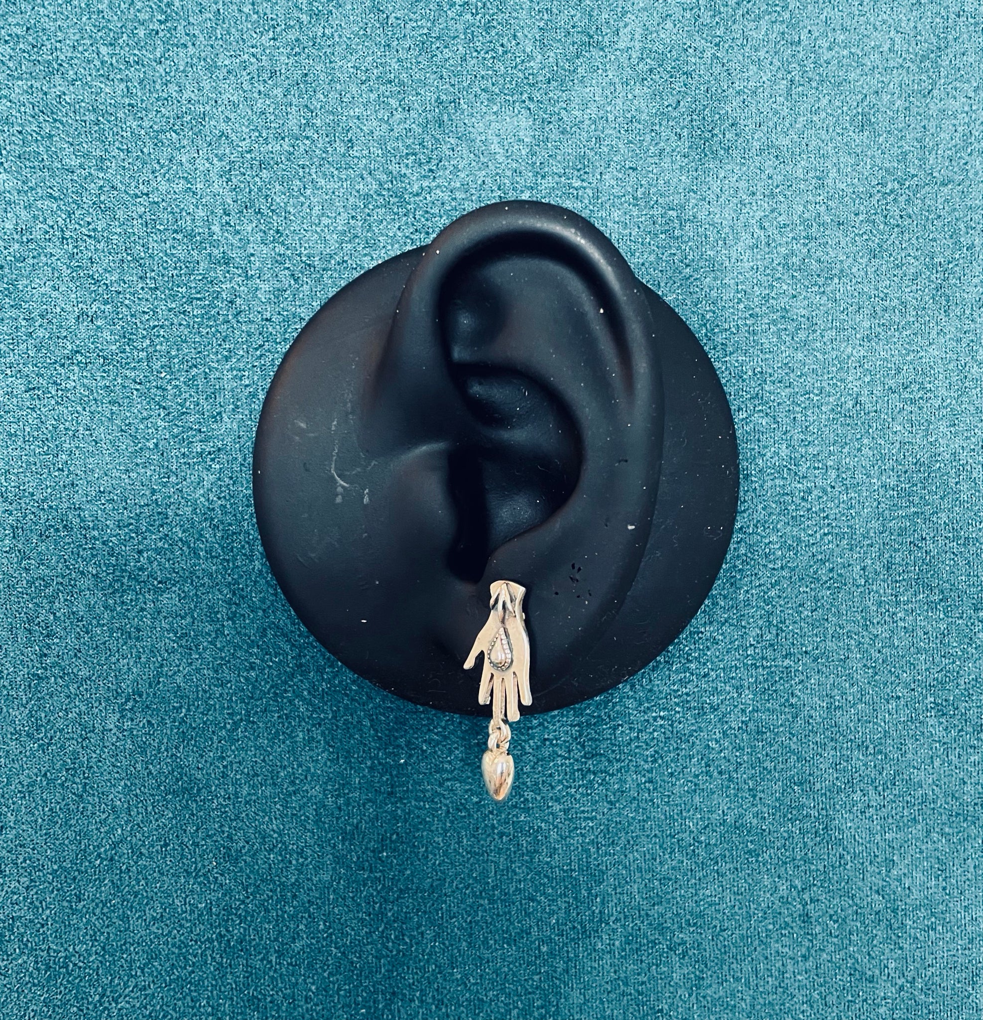 Beautifully detailed hand stud earrings with a tiny little chubby heart drop